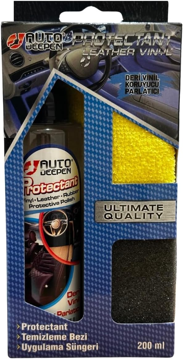 AutoDeepen Deri Vinil Koruyucu Parlatıcı Set 200 ml, araç içindeki deri ve vinil yüzeyleri temizleyen, besleyen ve koruyan komple bir bakım çözümüdür. Set içeriği sayesinde uygulama kolaylaşır, yüzeylerde doğal parlaklık ve uzun süreli koruma sağlanır.