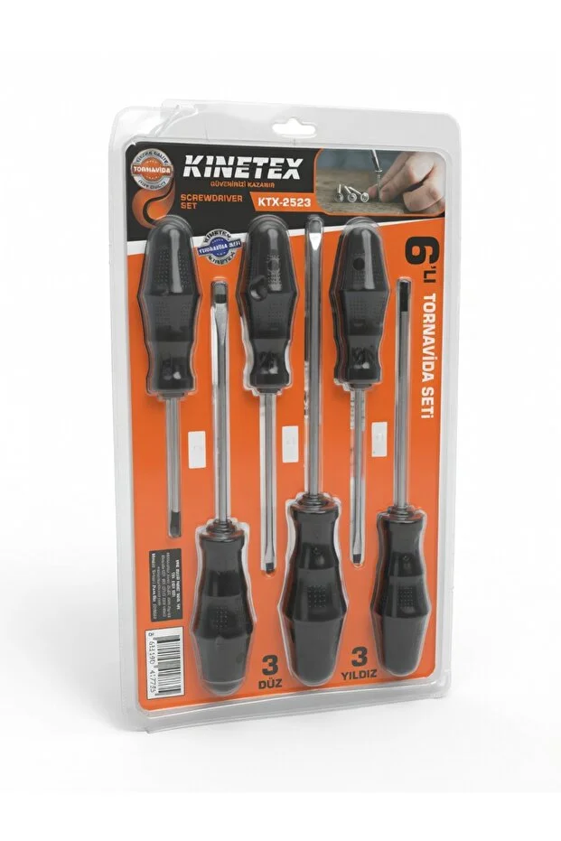 Kinetex KTX-2523 6’lı Tornavida Seti – 3 Düz + 3 Yıldız Tornavida Yüksek Kaliteli Set